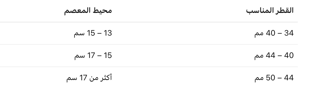 نصيحة مهمة: إذا كنت محتار بين مقاسين، دائمًا اختر الأصغر للمعاصم النحيفة والأكبر للمعاصم العريضة.