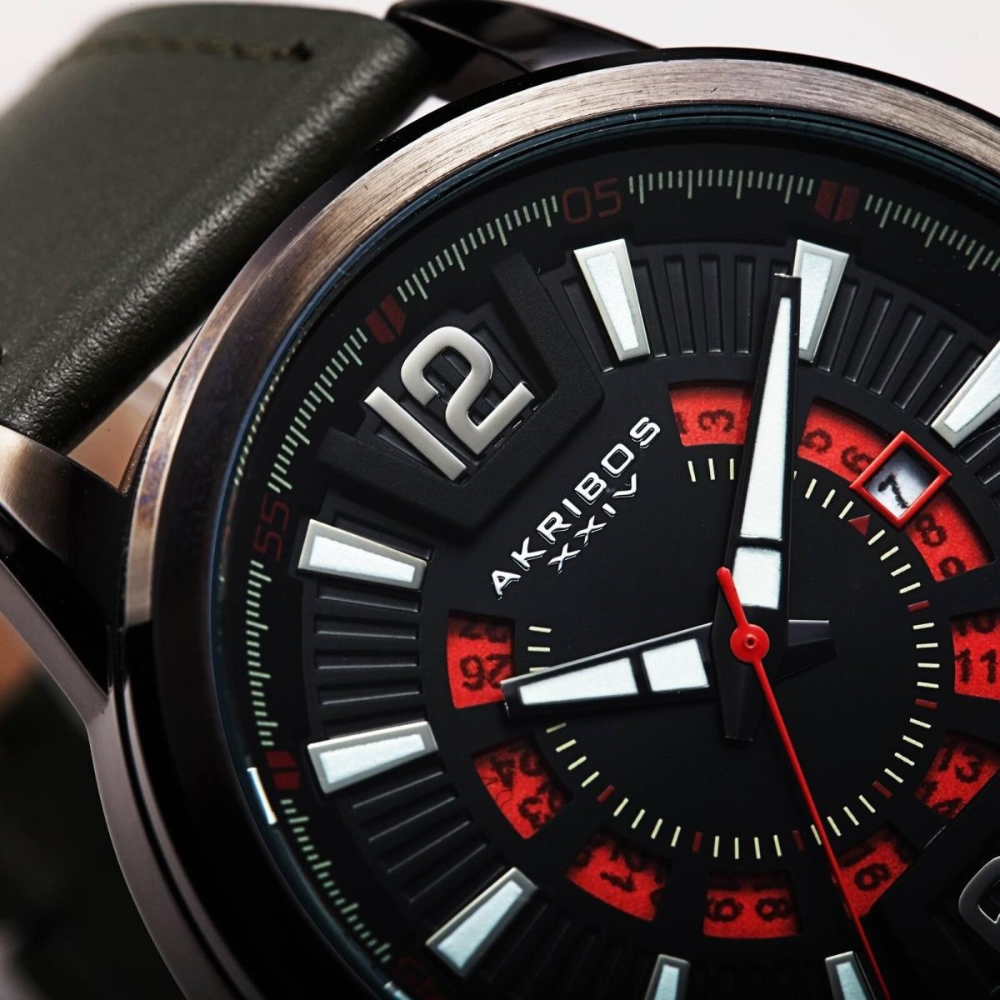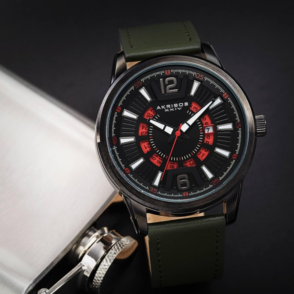 تعكس ساعة أكريبوس XXIV الرجالية أسلوبًا رياضيًا أنيقًا يجمع بين الجرأة والعملية، بتصميم عصري يلفت الأنظار. الميناء الأسود مع التفاصيل الحمراء يمنحها طابعًا ديناميكيًا جذابًا، بينما يوفّر السوار الجلدي الأخضر لمسة عصرية راقية وراحة عالية في الارتداء. خيار مثالي لكل رجل يقدّر التميز في كل التفاصيل🔥