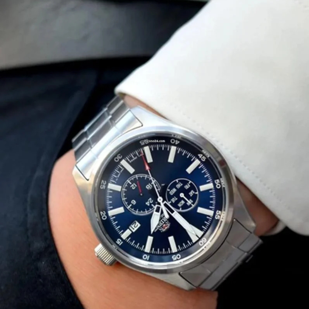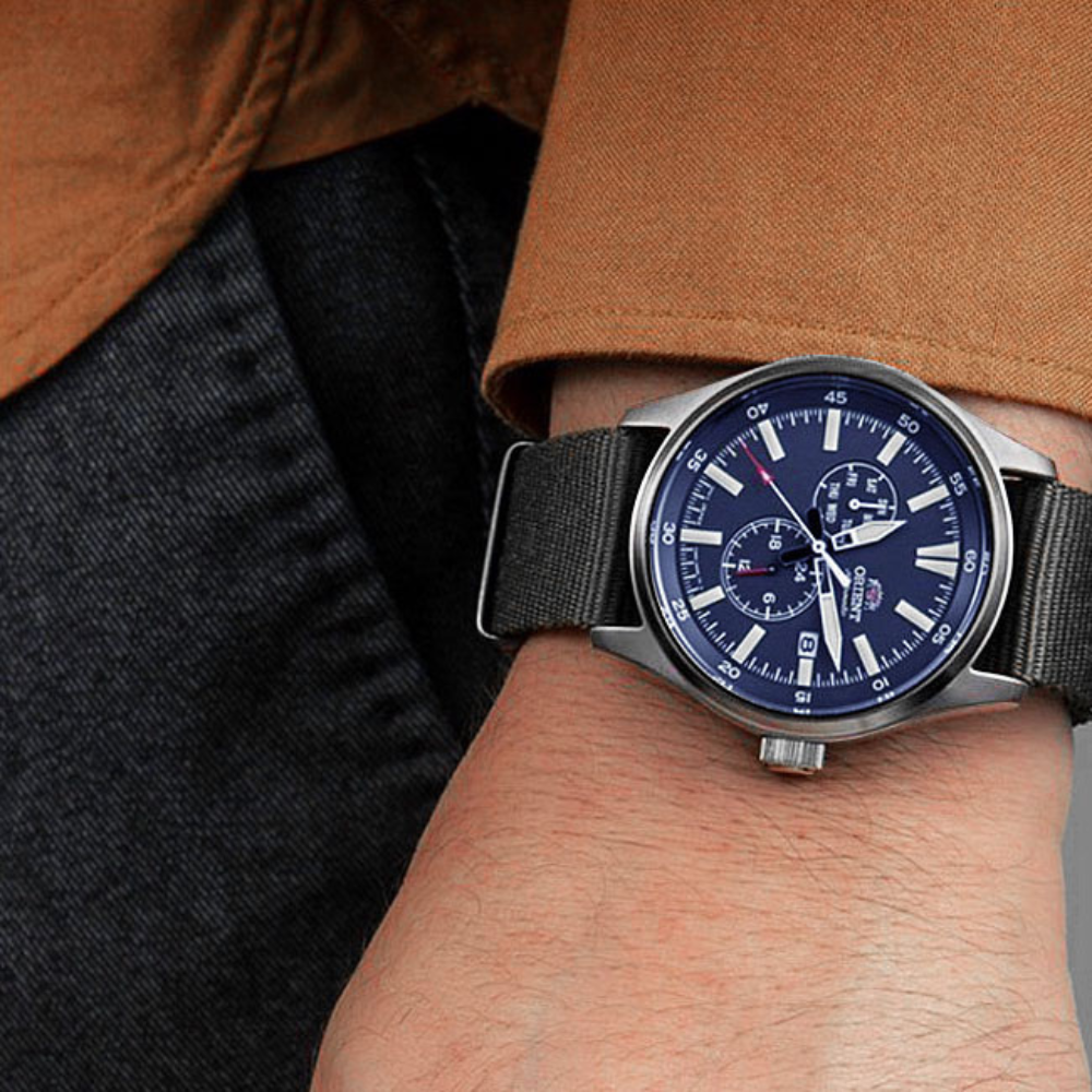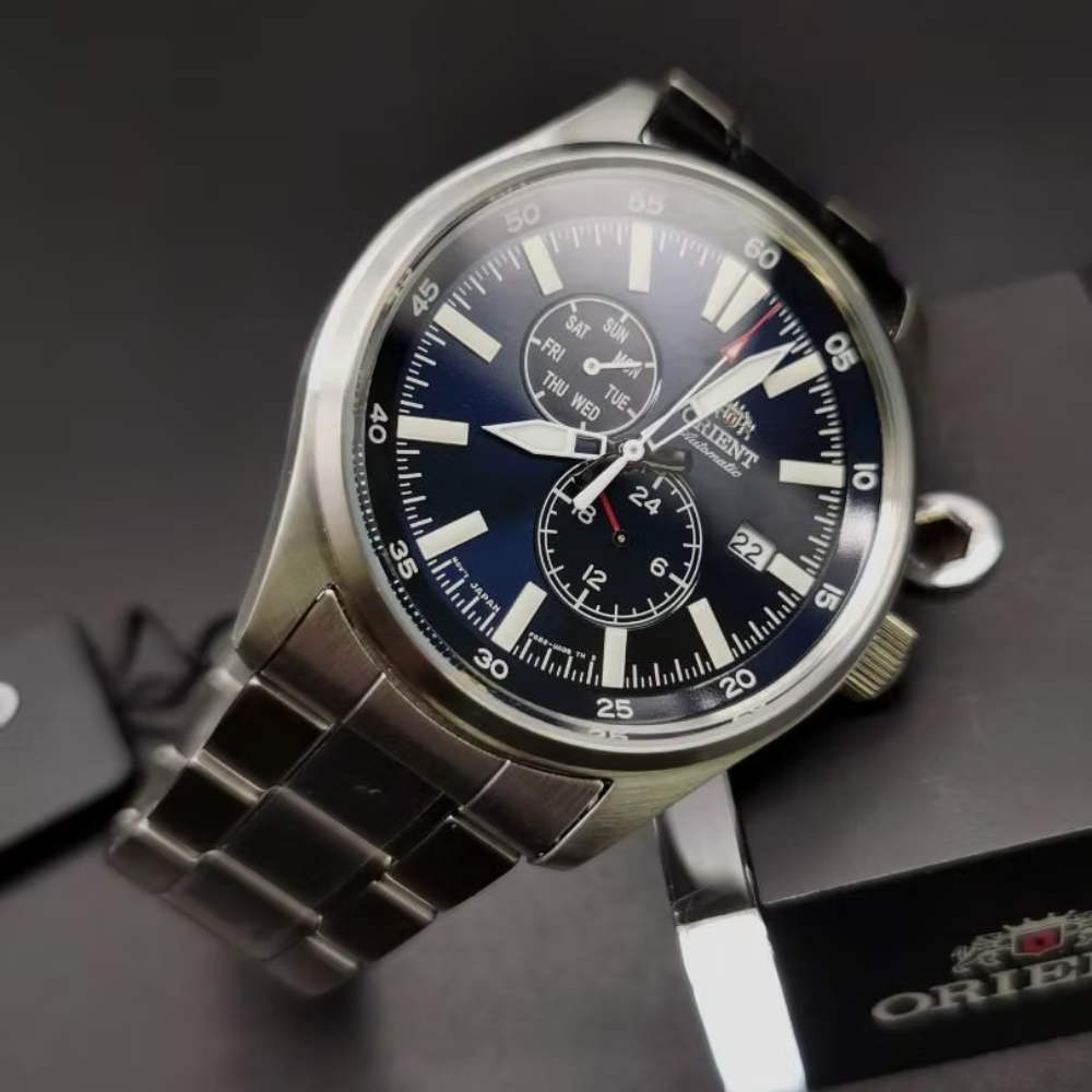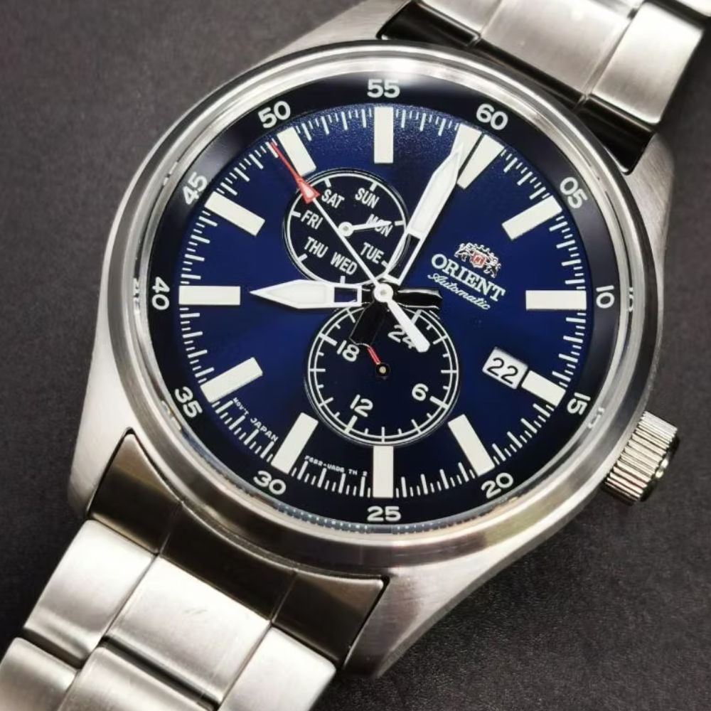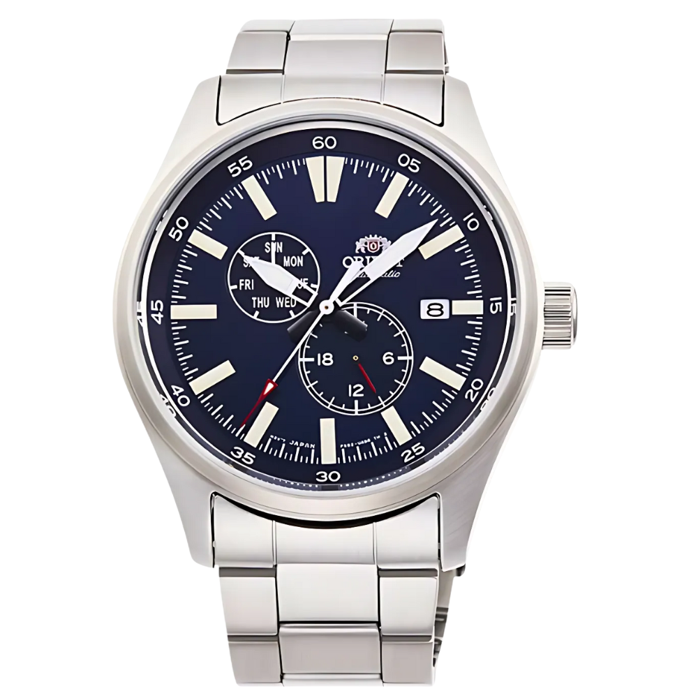 ساعة أورينت ديفيندر 2 الأوتوماتيكية الرجالية تمزج بين التصميم العصري والوظائف العملية. يلفت الميناء الأزرق العميق الأنظار بجاذبيته وتدرجاته المميزة، بينما تضيف مؤشرات اليوم والـ 24 ساعة والسوار المعدني المصقول لمسة من القوة والأناقة التي تناسب جميع الإطلالات 💙