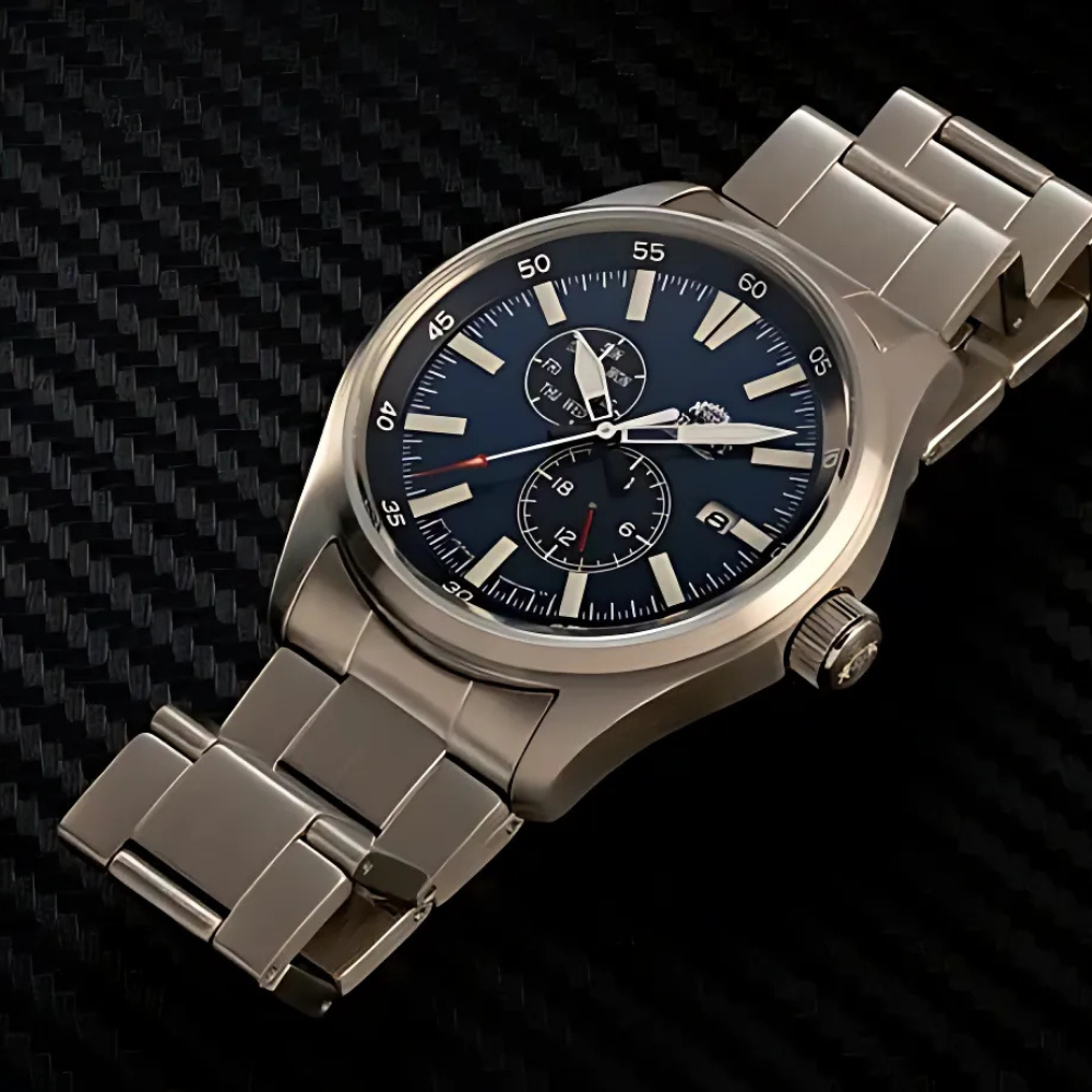 • زجاج معدني مقاوِم للخدوش: يحافظ على وضوح الميناء ويضمن متانة عالية في الاستخدام اليومي.
