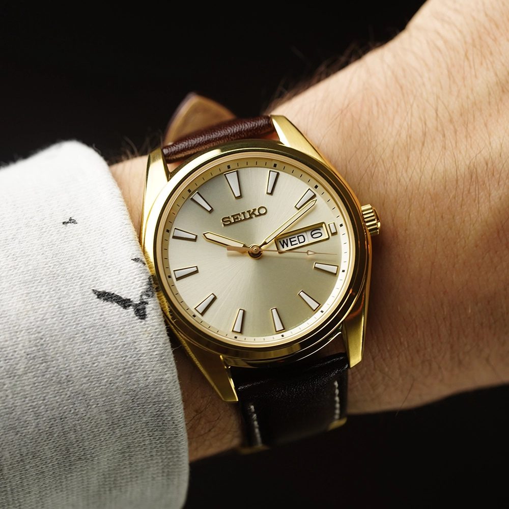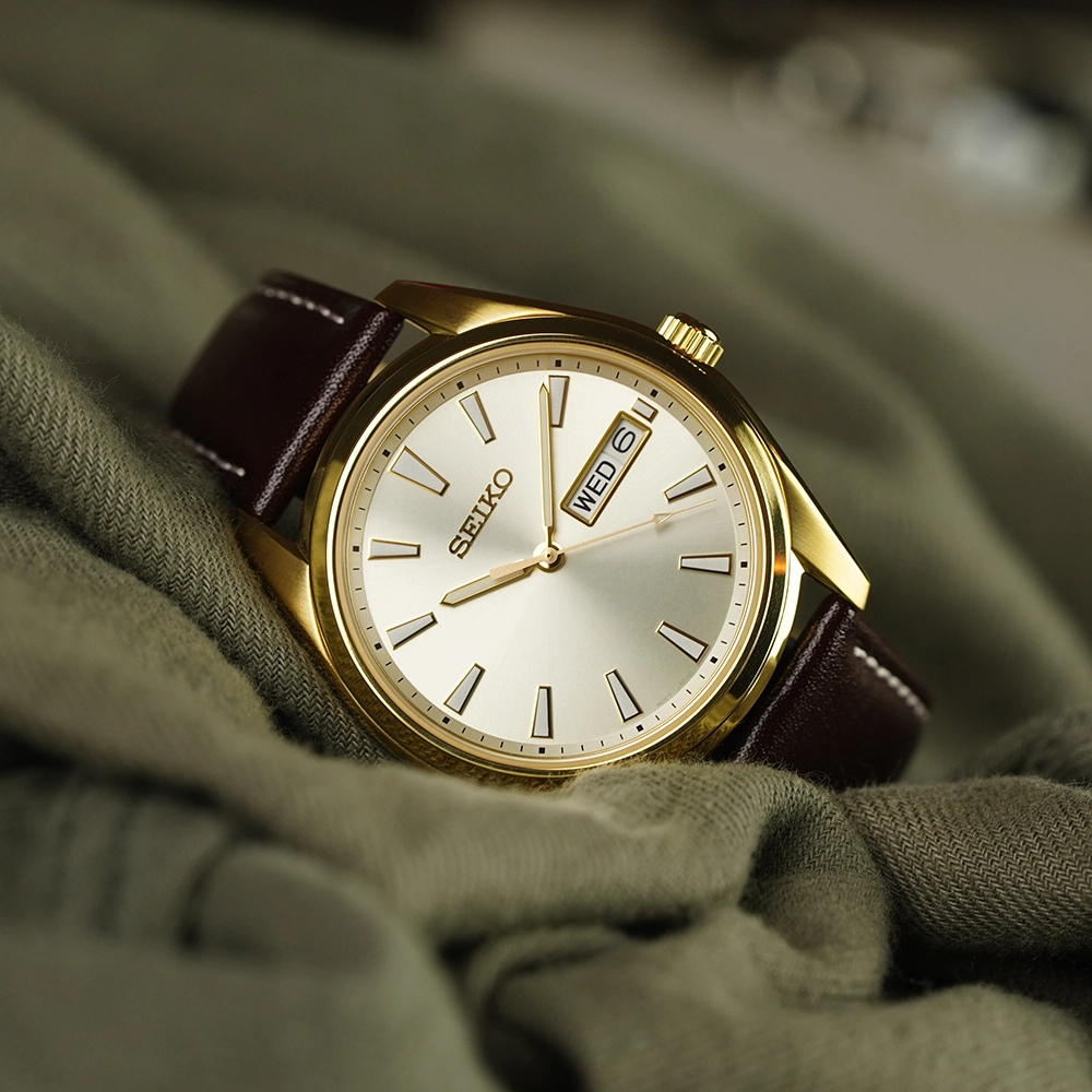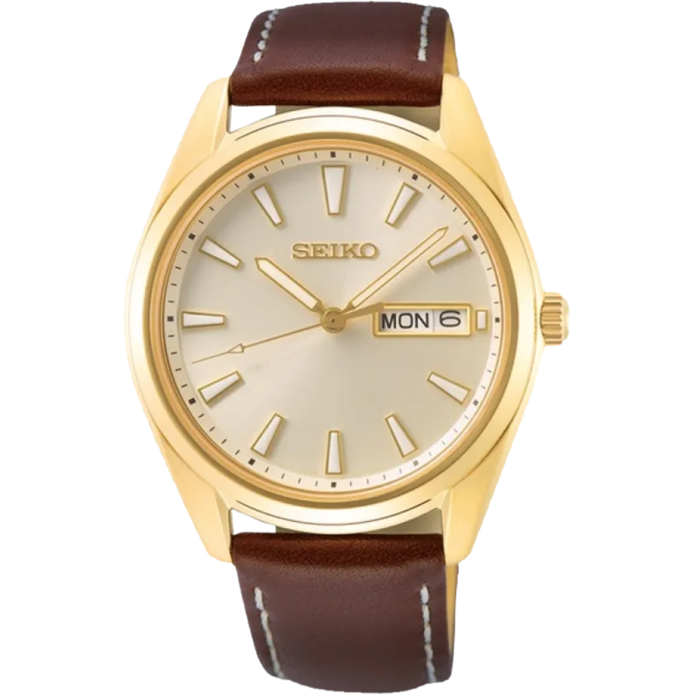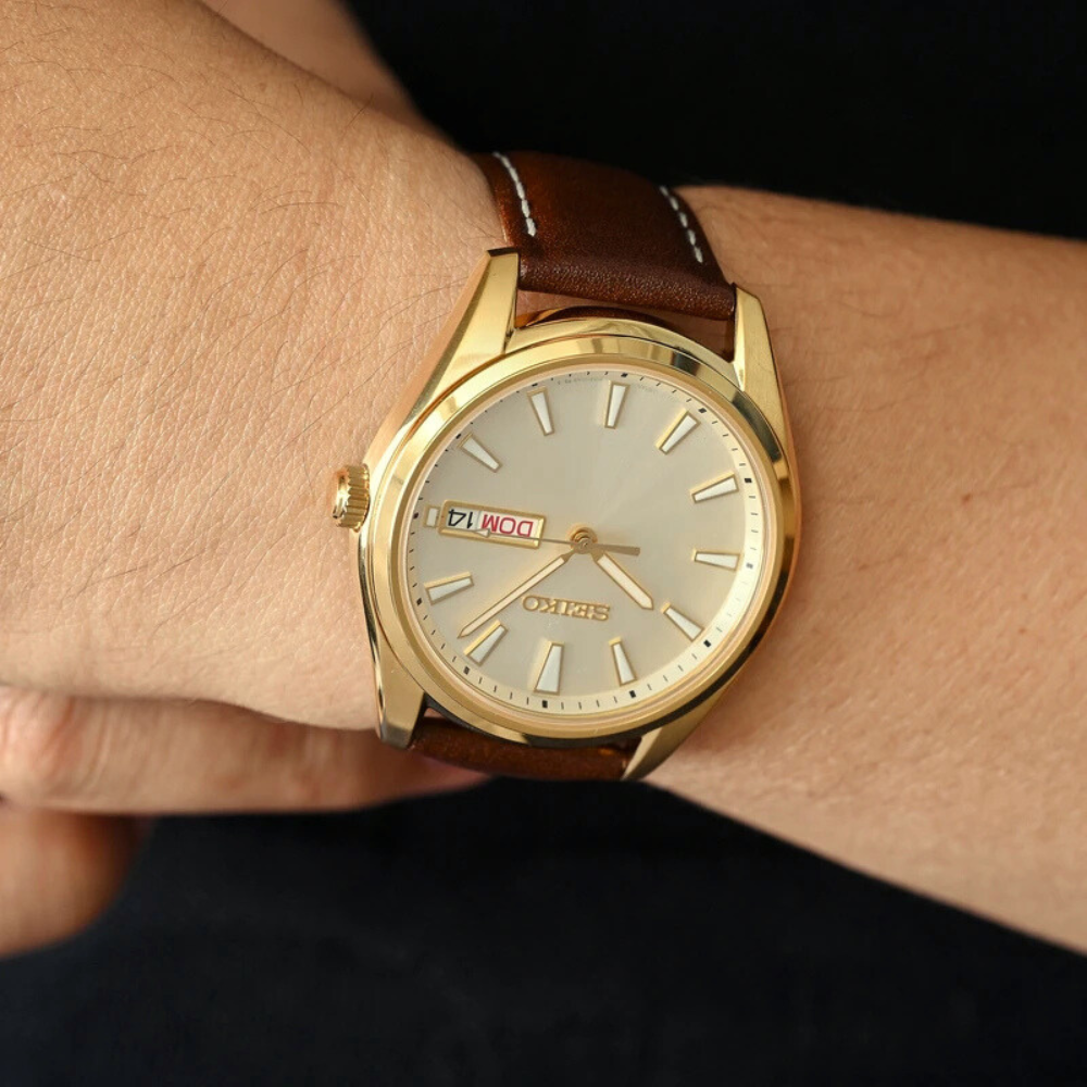 ساعة سيكو نيو كلاسيك الرجالية تجمع بين البساطة الأنيقة والدقة اليابانية في تصميم كلاسيكي يناسب كل الأوقات. الميناء بلون الشامبانيا يمنح الساعة لمسة دافئة ومميزة، بينما يكمل السوار الجلدي البني المظهر الفاخر بإحساس مريح وأناقة يومية✨