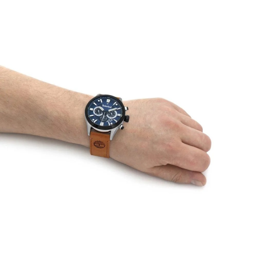 ساعة تمبرلاند تيدمارك كوارتز الرجالية تجمع بين الأناقة والصلابة في تصميم متكامل. يتميز الميناء الأزرق الداكن بعقارب ومؤشرات مضيئة لتسهيل قراءة الوقت في مختلف ظروف الإضاءة. يأتي الهيكل بقطر ليمنح الساعة مظهرًا قويًا، بينما يضفي السوار الجلدي البني المنقوش بشعار تمبرلاند والمصنوع لمسة من الفخامة والراحة على معصمك😍