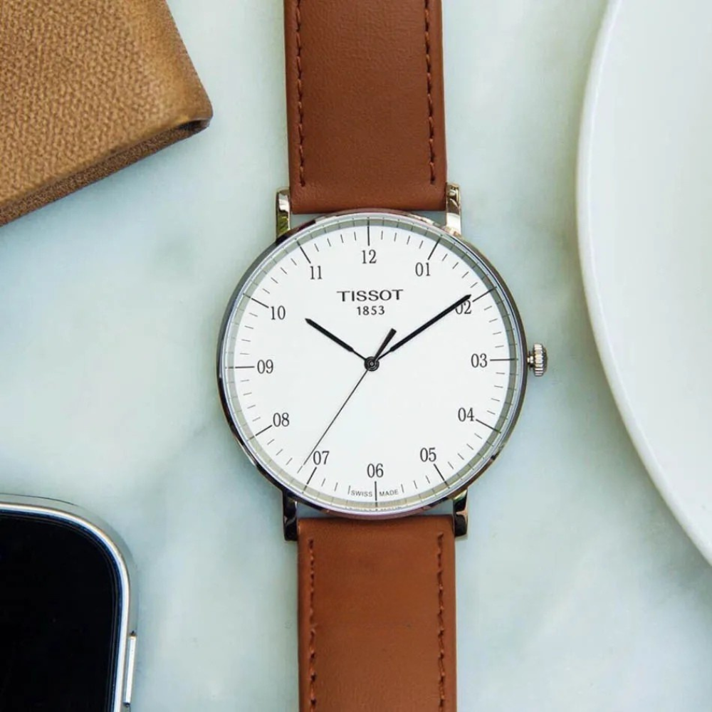 تجمع ساعة تيسو تي كلاسيك إفري تايم الرجالية بين البساطة الكلاسيكية والأناقة اليومية: ميناء فضي ، وسوار جلدي بني فاخر، مما يجعلها خيارًا مثاليًا للارتداء اليومي والمناسبات الرسمية🤎