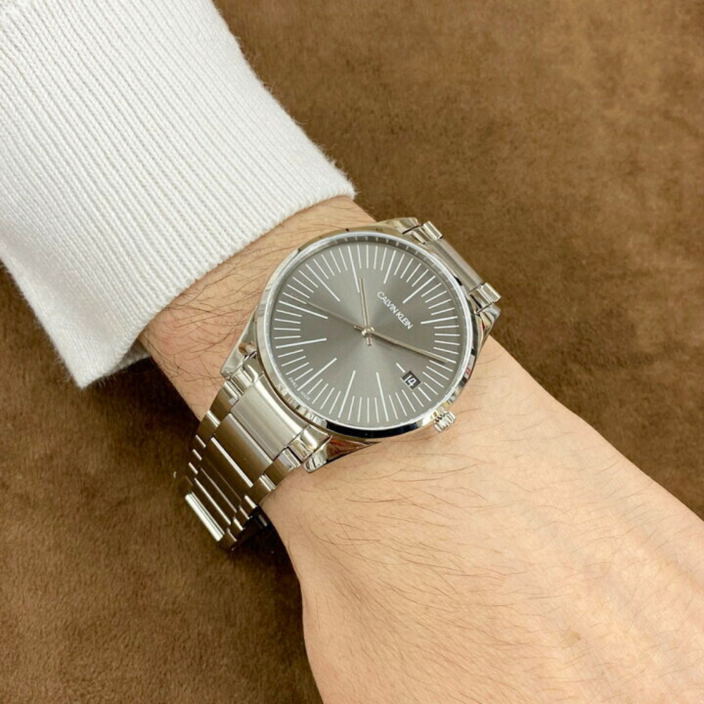 ساعة كالڤن كلاين الرجالية تجمع بين البساطة الراقية والفخامة السويسرية في تصميم عصري أنيق. يتميز ميناؤها الرمادي الهادئ بعقارب ومؤشرات فضية واضحة، بينما يضفي السوار المعدني المصقول طابعًا كلاسيكيًا يناسب مختلف الإطلالات اليومية والرسمية🤍