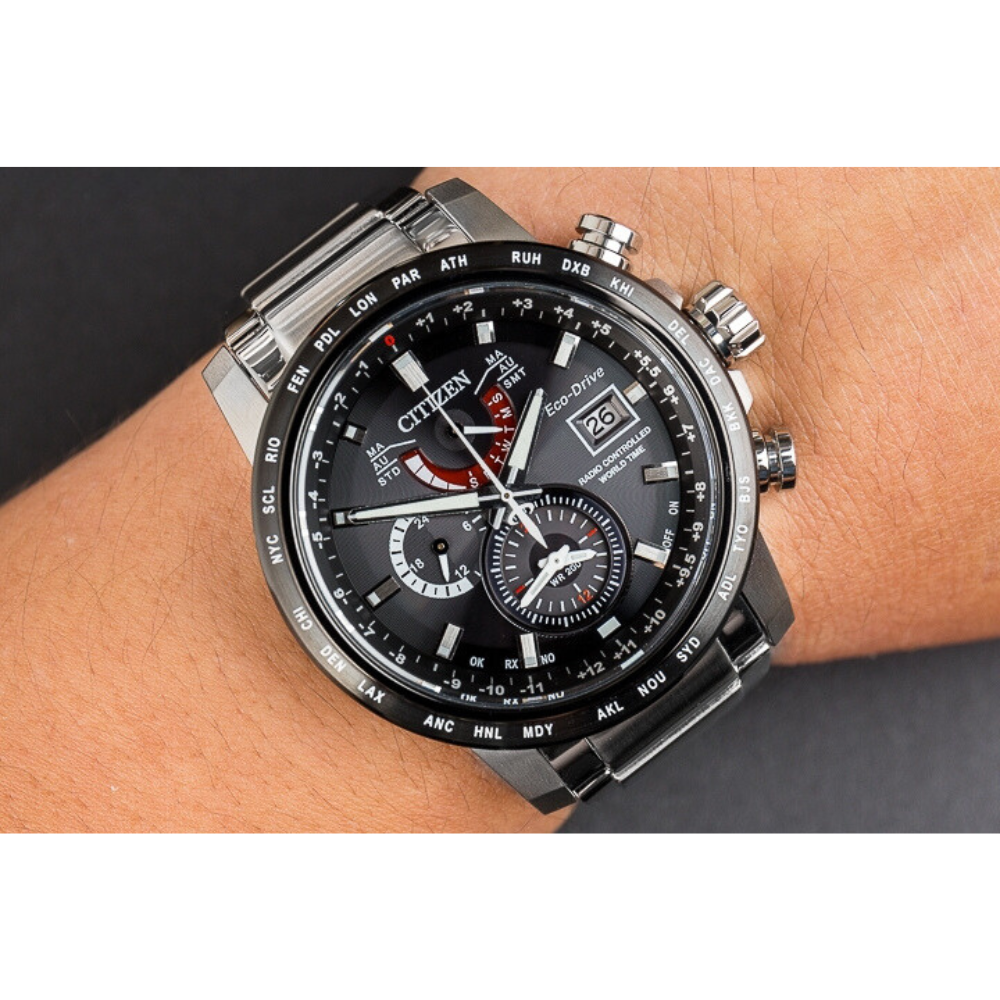 لو كنت من عشاق السفر أو تحتاج تعرف الوقت في مناطق مختلفة بدقة عالية، ساعة سيتيزن ورلد تايم إيـكو درايف موديل AT9071-58E بتكون اختيارك الأفضل.