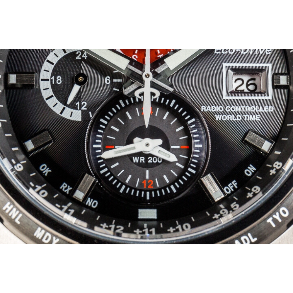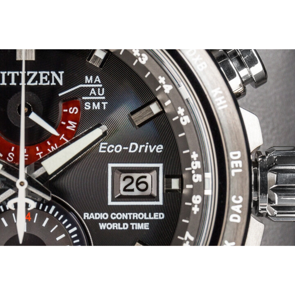 الساعة تتميز بتقنية توقيت ذري وذاتية التزامن لضمان دقة متناهية. مع تقنية إيـكو درايف، ما تحتاج بطارية مدى الحياة لأنها تشتغل بأي مصدر ضوء.