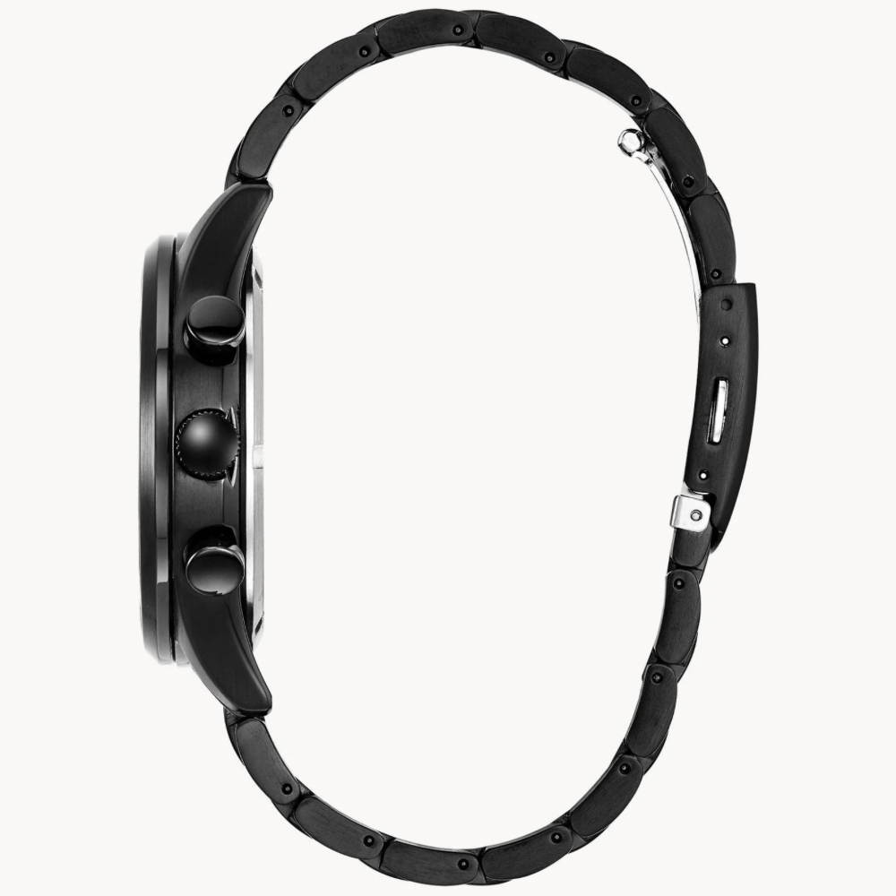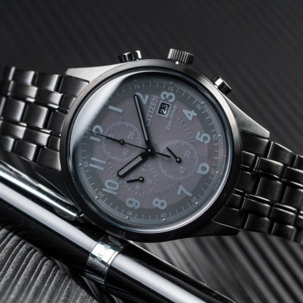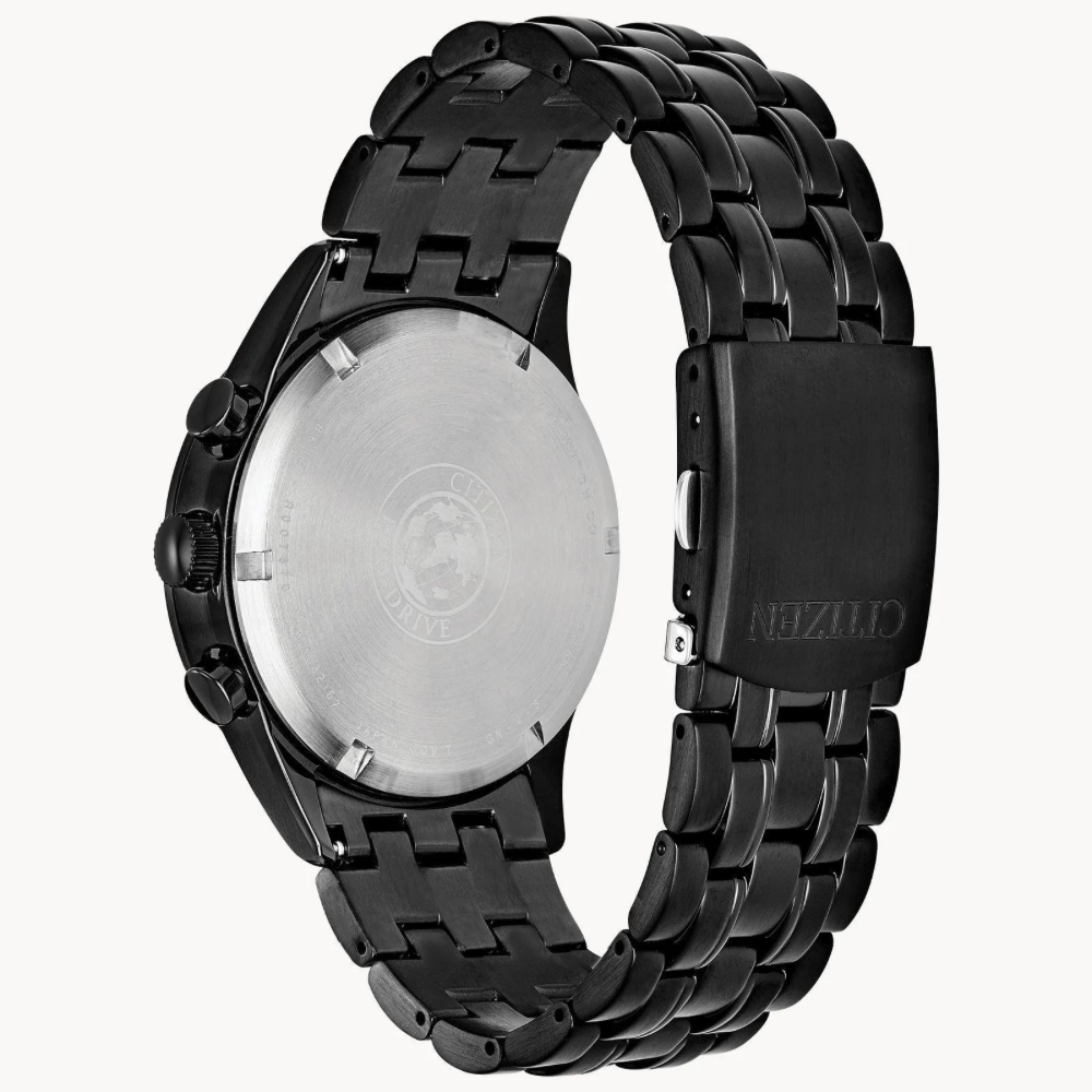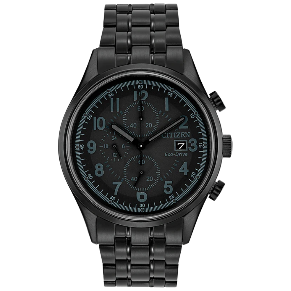 ساعة سيتيزن شاندلر إيكو درايف الرجالية تجمع بين الأناقة والأداء المتفوق. الهيكل المصنوع من الفولاذ المقاوم للصدأ باللون الأسود بقطر 42 ملم وسُمك 12 ملم يعطيها مظهرًا عصريًا وجريئًا. الميناء الأسود المزود بعقارب مضيئة يضمن لك قراءة الوقت بسهولة في أي وقت. تحتوي أيضًا على كرونوغراف بدقة 1/5 ثانية لقياس الوقت حتى 60 دقيقة، مع عرض 12/24 ساعة وتاريخ عند الساعة 3 يمنحك طريقة عملية وسهلة لمتابعة الوقت, السوار المعدني بعرض 22 ملم يوفر راحة وثباتًا على المعصم💖