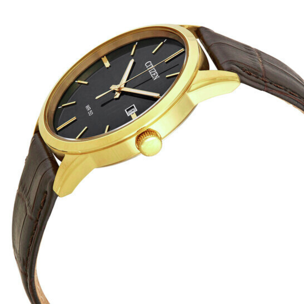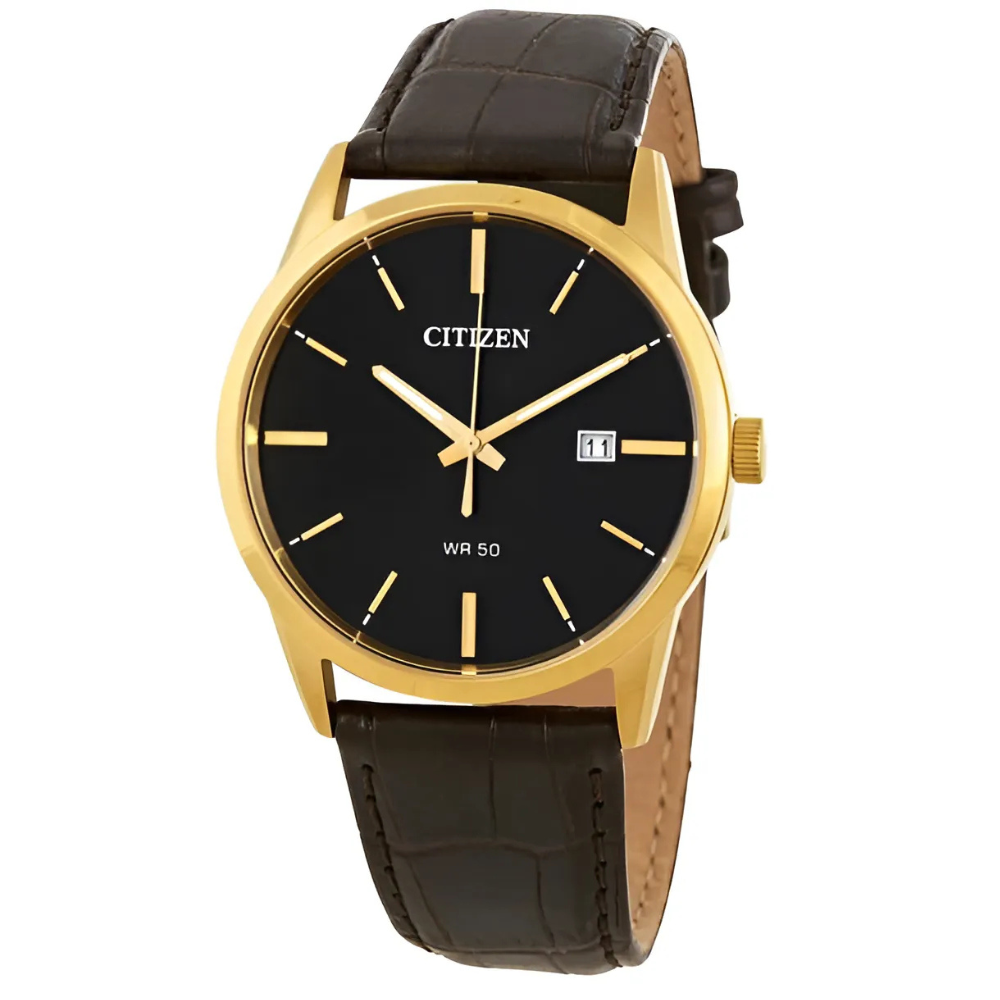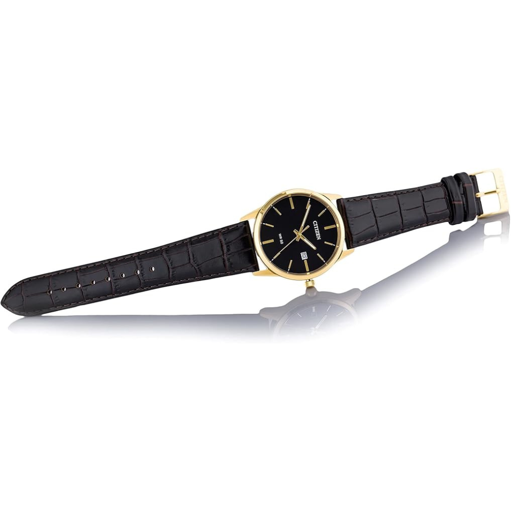 ساعة سيتيزن كوارتز الرجالية تجمع بين البساطة الكلاسيكية والفخامة العصرية، لتكون خيارًا مثاليًا لكل من يبحث عن أناقة تدوم. يتميز الميناء الأسود بعقارب ومؤشرات ذهبية تضفي لمسة راقية على التصميم. يأتي الهيكل المصنوع من الستانلس ستيل بلمسات ذهبية فاخرة بينما يوفر السوار الجلدي البني راحة وأناقة مثالية للاستخدام اليومي والمناسبات الرسمية✨
