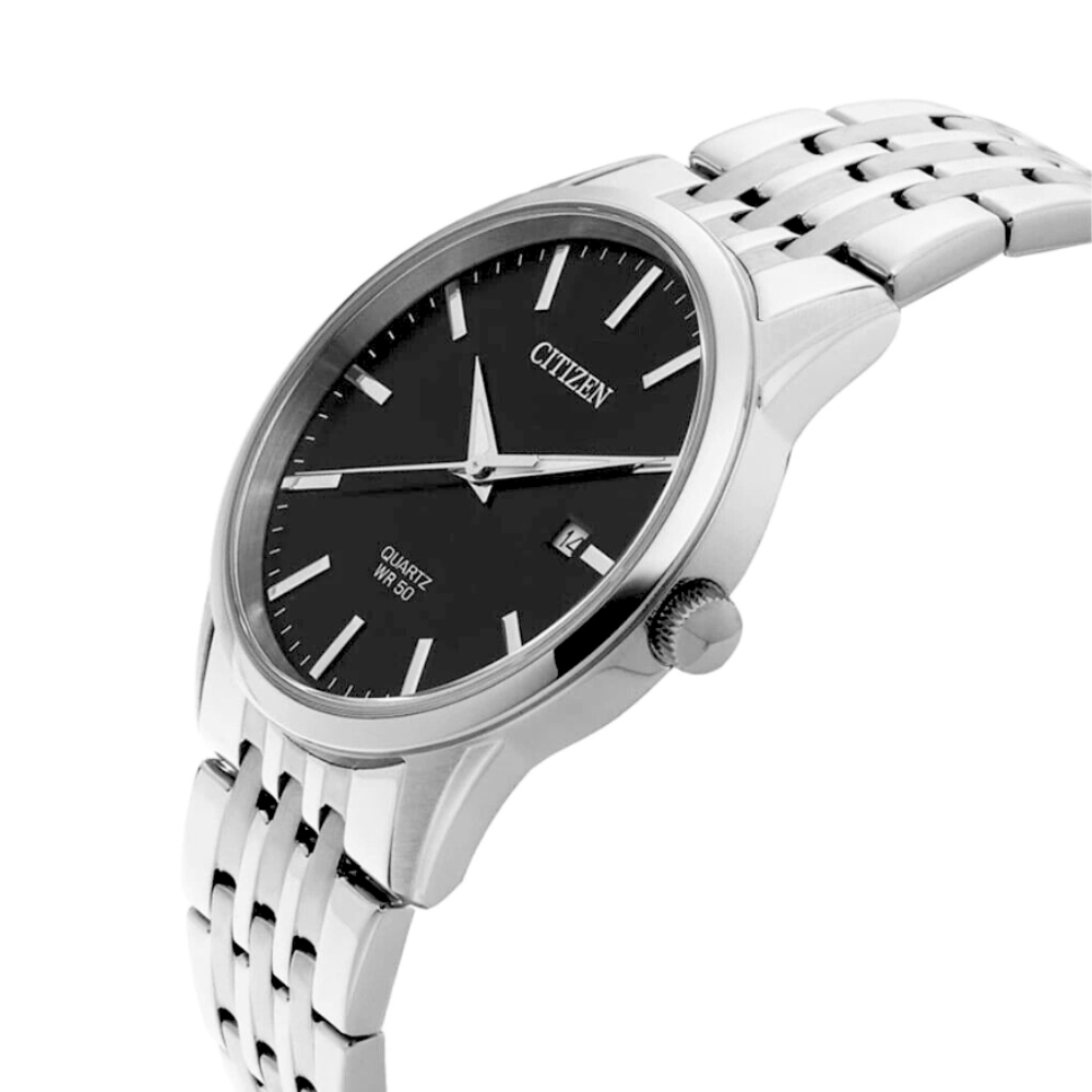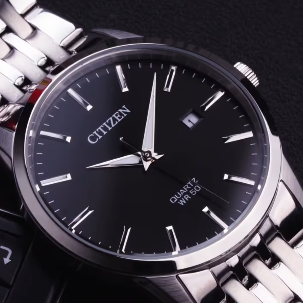 ساعة سيتيزن الرجالية بتصميم كلاسيكي أنيق يليق بكل مناسبة، تجمع بين البساطة والفخامة في آنٍ واحد. يأتي الميناء الأسود بتفاصيل واضحة ومؤشرات فضية لقراءة دقيقة وسهلة، بينما يضيف السوار المعدني المصقول لمسة من الرقي والعملية. ساعة مثالية للرجل الذي يبحث عن الأناقة اليومية✨