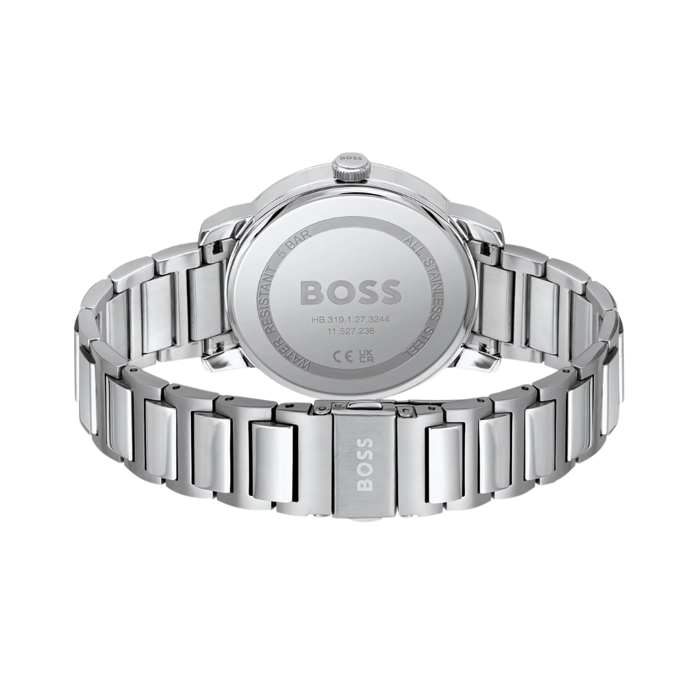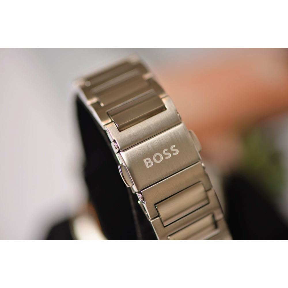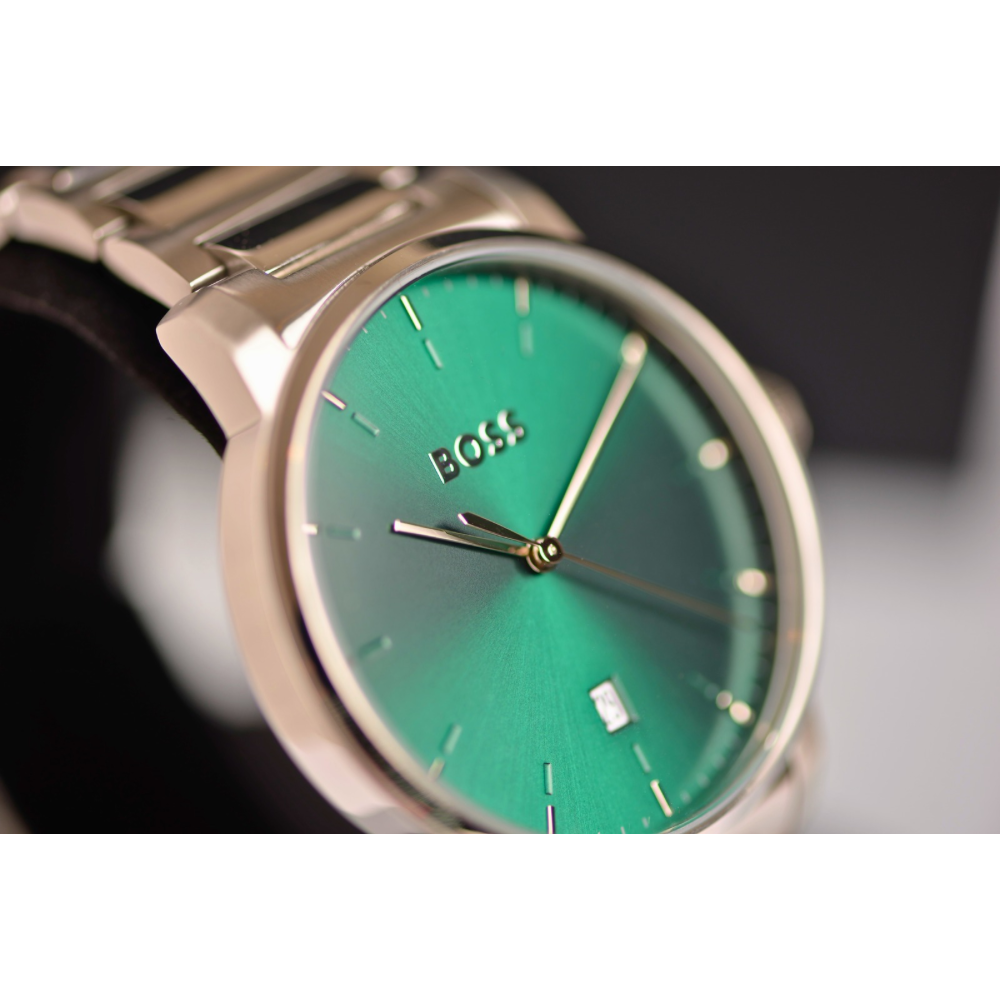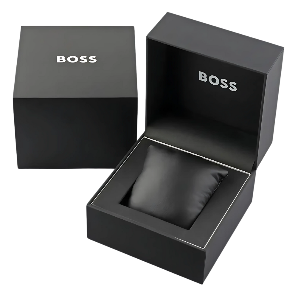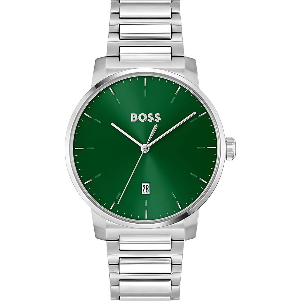 ساعة هوغو بوس أمباسيدر كوارتز الرجالية بتصميم أنيق وعصري، تجمع بين الدقة والفخامة. تأتي بـميناء أخضر جذاب مزوّد بمؤشرات وعقارب فضية لعرض الوقت بوضوح، بالإضافة إلى نافذة عرض التاريخ لتسهيل متابعة مواعيدك اليومية. تم تصميم الهيكل من الستانلس ستيل الفضي عالي الجودة بقطر 42 ملم وسماكة 10 ملم ليمنح الساعة مظهرًا متوازنًا وأنيقًا💚