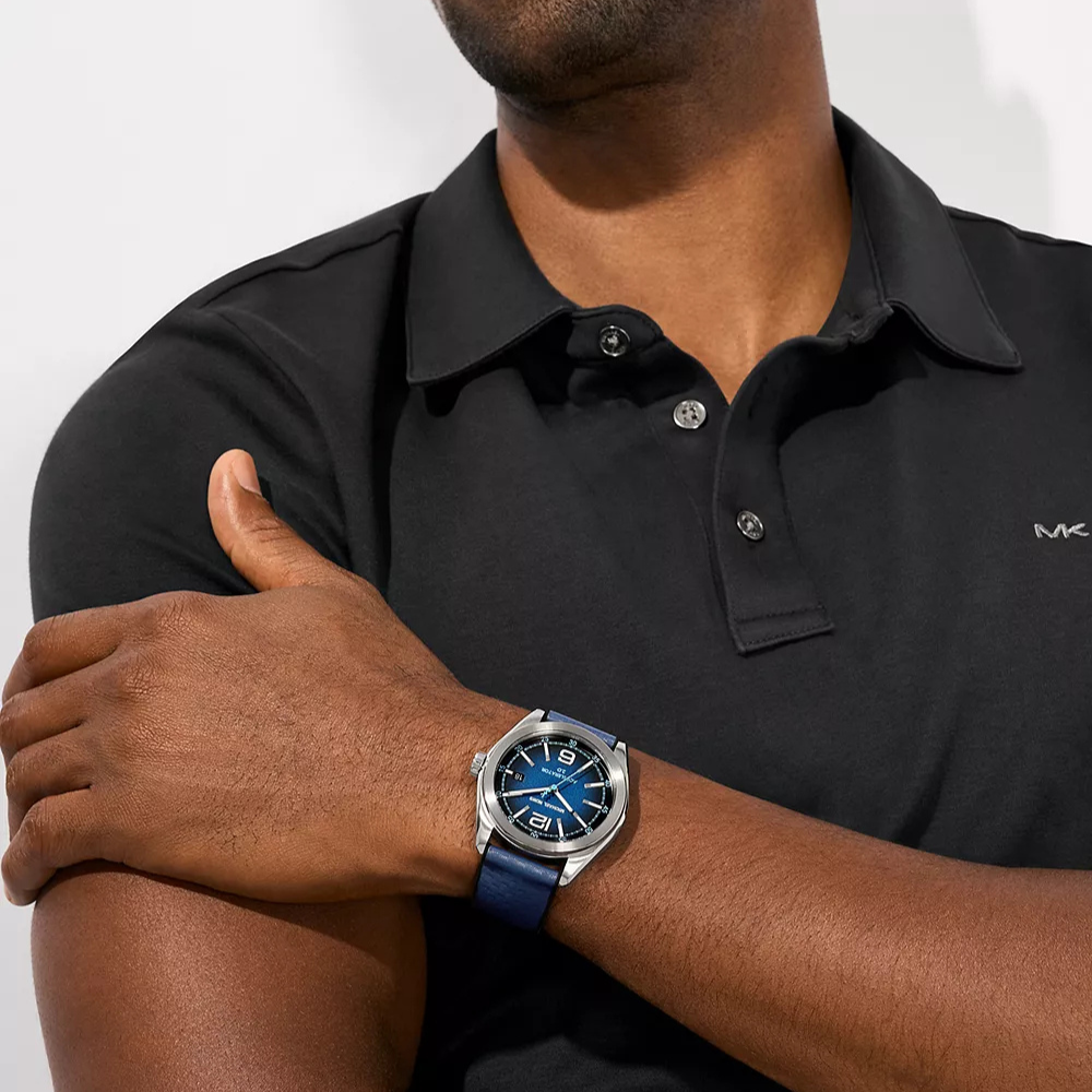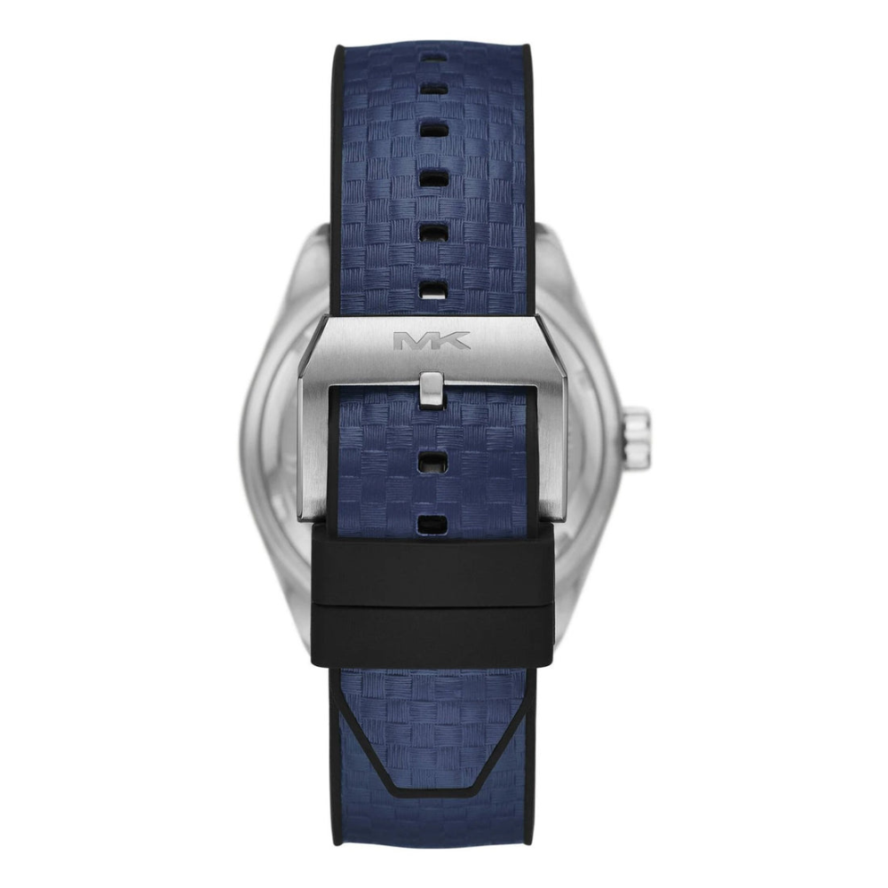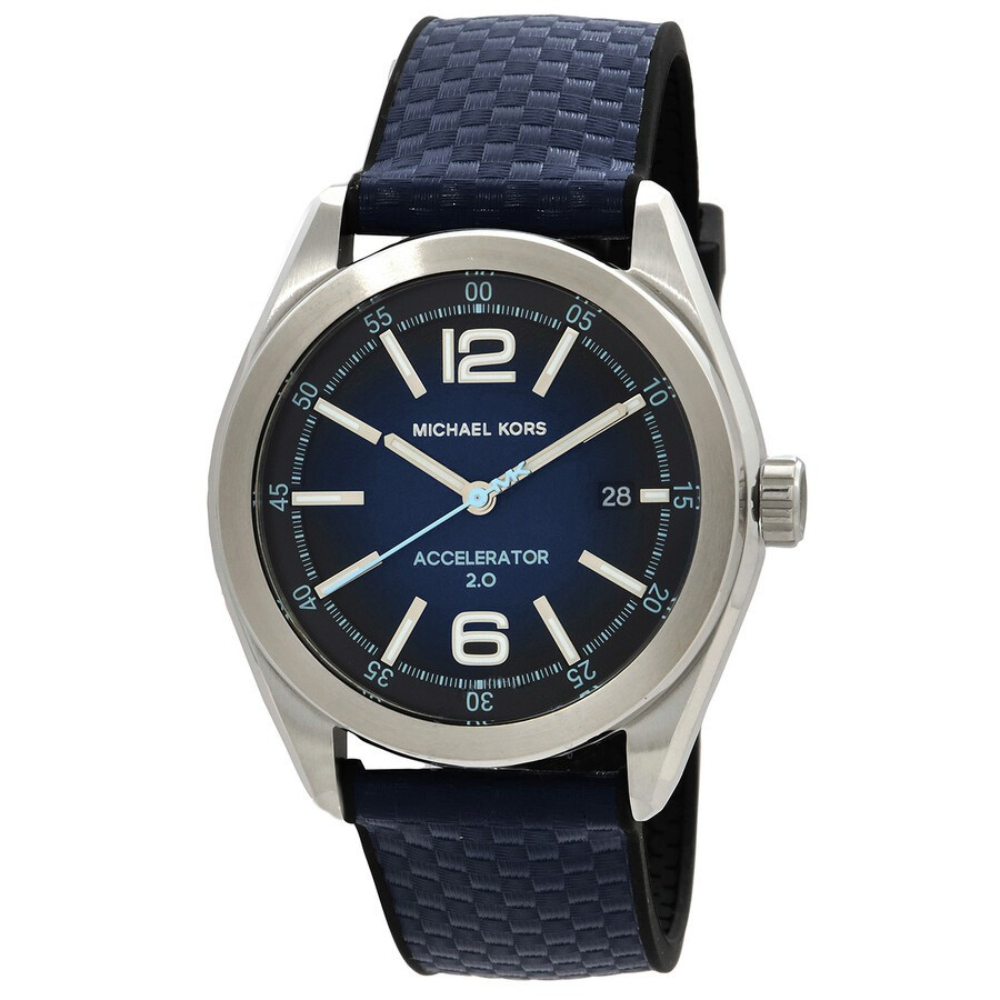 تجمع ساعة مايكل كورس أكسيليريتور كوارتز رجالية بين التصميم الرياضي العصري والأناقة الكلاسيكية. تتميز بميناء أزرق متدرج يضفي عمقًا بصريًا، وهيكل من الستانلس ستيل بلون فضي، مع سوار يجمع بين النسيج الأزرق والسيليكون الملمس، مما يجعلها مثالية للاستخدام اليومي والمناسبات غير الرسمية💙