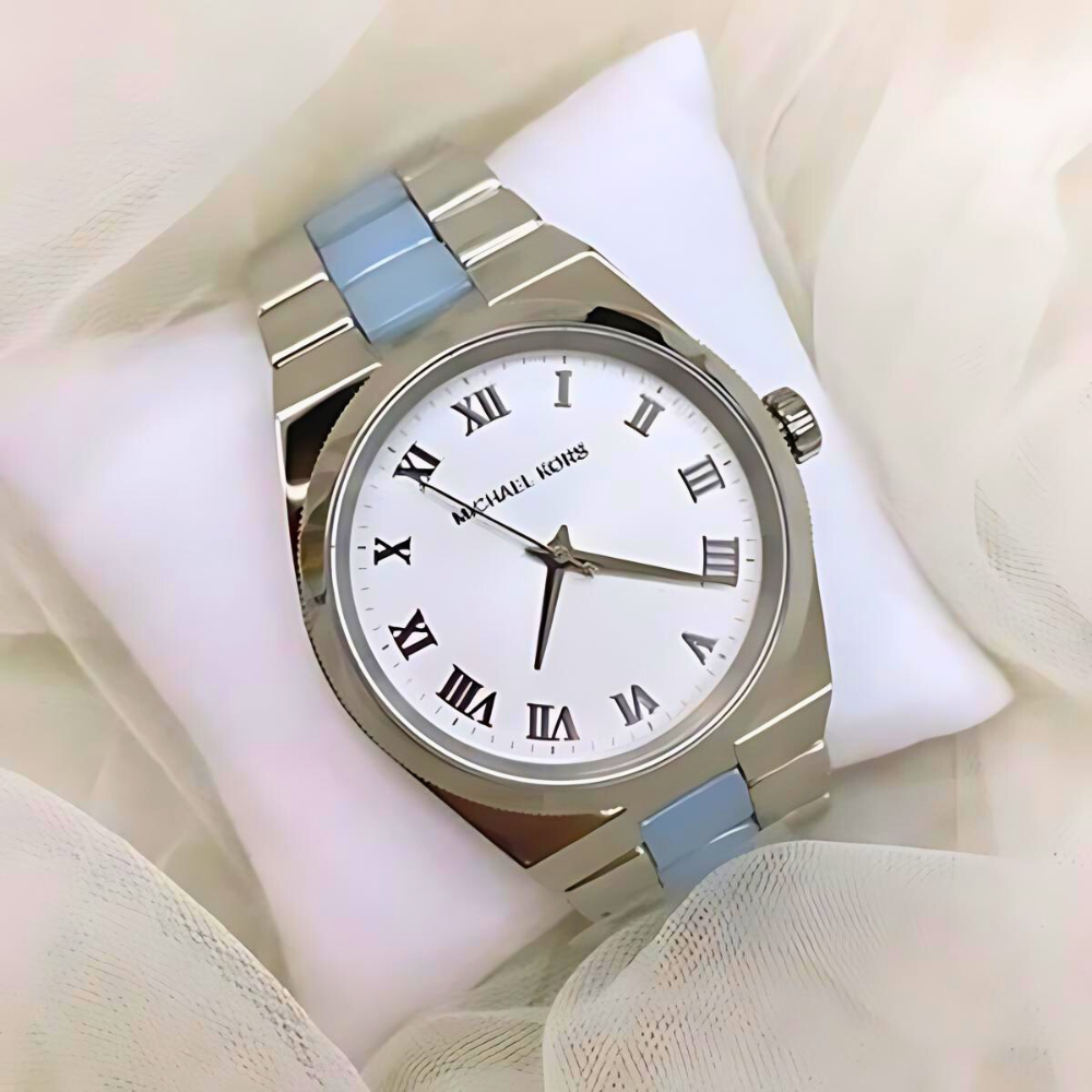 ساعة مايكل كورس تشاننج كوارتز النسائية تجمع بين البساطة الراقية والفخامة العصرية، لتكون قطعة أنيقة تكمّل إطلالتك في كل المناسبات. تتميز بتفاصيل أنثوية جذابة ولمسة لونية جريئة تمنحها طابعًا مميزًا🤍
