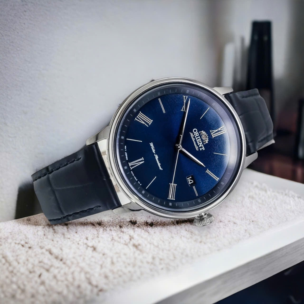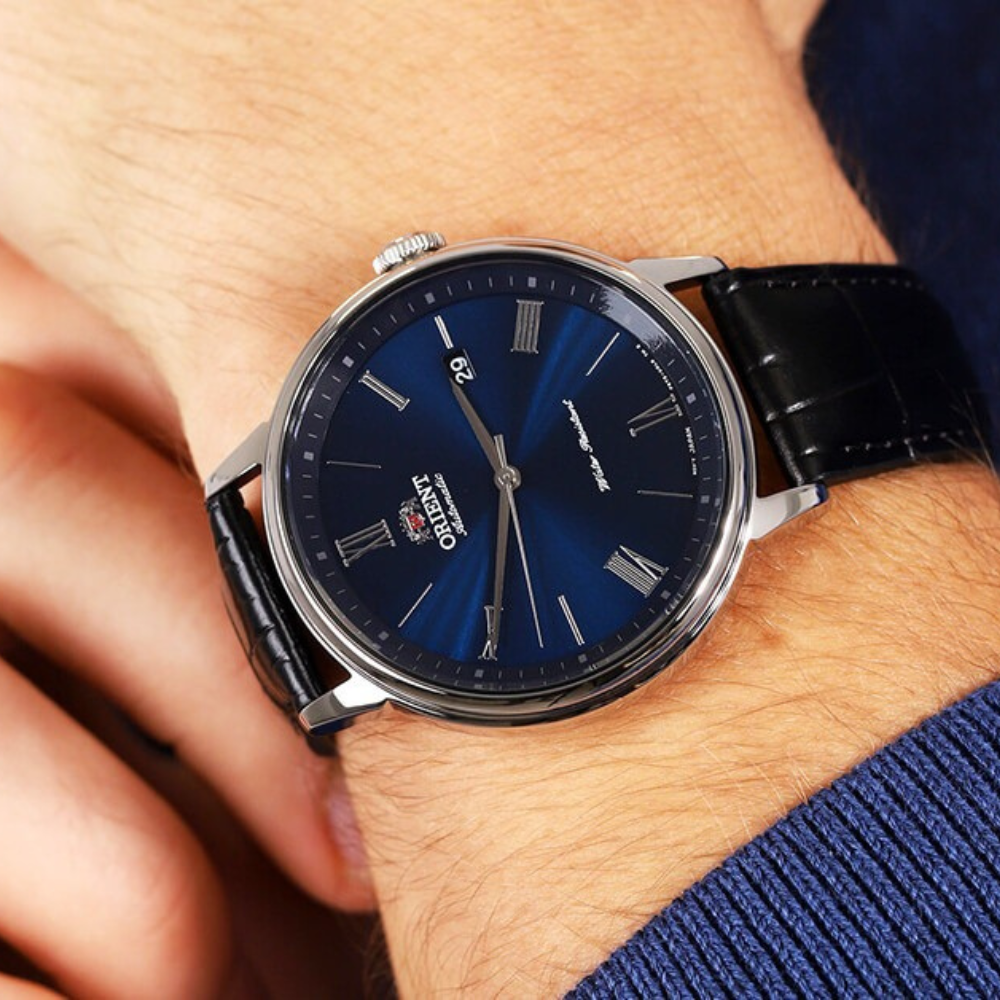 ساعة رجالية أنيقة تعكس الذوق الكلاسيكي بأداء أوتوماتيكي متقن. ميناؤها الأزرق العميق يضفي طابعًا راقياً وعصرياً، بينما يتكامل الهيكل الفضي مع السوار الجلدي الأسود الذي يمنح الراحة والمظهر الرسمي في آنٍ واحد. خيار مثالي للرجال الباحثين عن التوازن بين التصميم الفاخر والدقة اليابانية💙