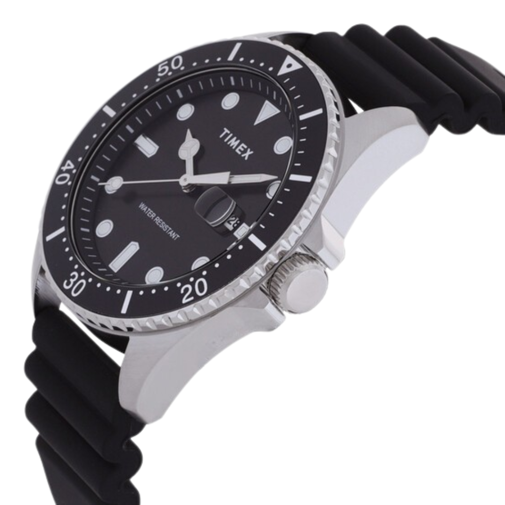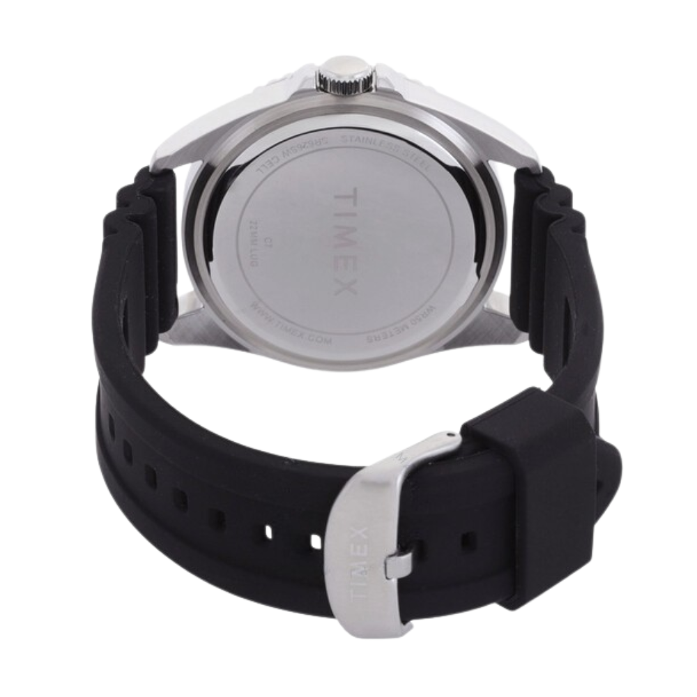 تجمع ساعة تايمكس تريند كوارتز الرجالية بين التصميم الكلاسيكي والطابع الرياضي العصري، يتميز ميناؤها الأسود الأنيق بمؤشرات وعقارب مضيئة لتسهيل قراءة الوقت حتى في الإضاءة المنخفضة. يأتي الهيكل المصنوع من الفولاذ المقاوم للصدأ ليمنحها حضورًا متناسقًا على المعصم، أما السوار السيليكوني الأسود فيوفر راحة مثالية بفضل خفة وزنه ومرونته 🖤